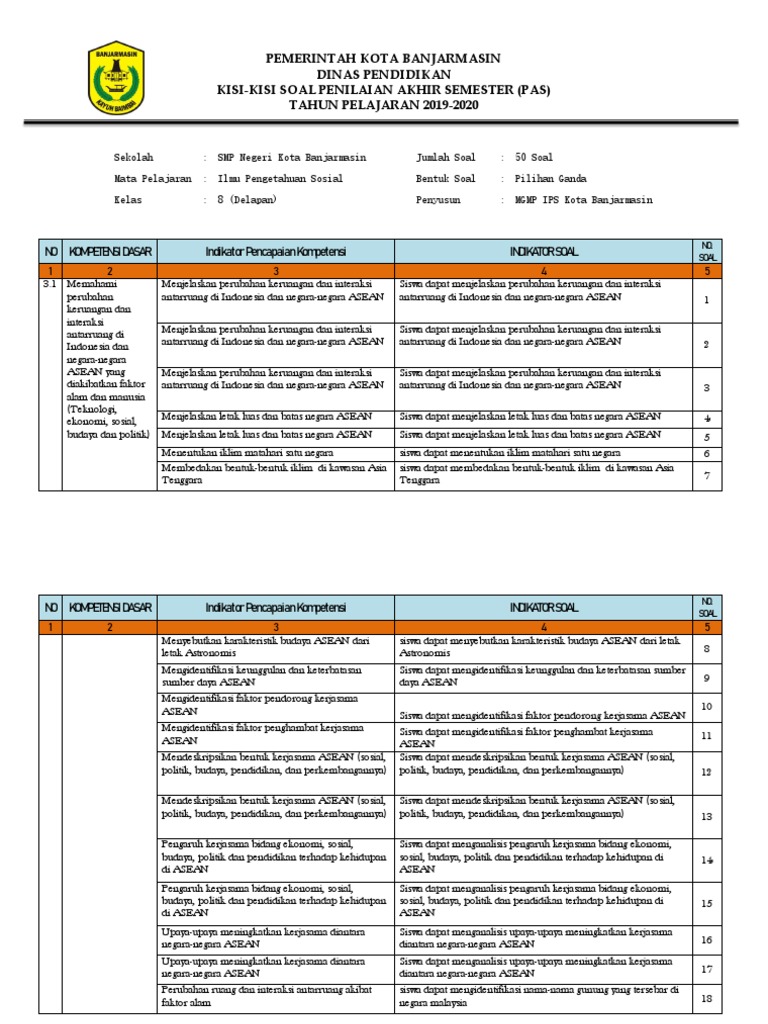Kisi Kisi Pas Ips Kelas 8 Semester 1 2020 - Kisi Kisi Uts Ips Kelas 7 201718 : Latihan soal pas/uas matematika kelas 7 (vii) smp/mts semester 1 kurikulum 2013 disertai kunci jawaban dan pembahasan.. Video pembelajaran siswa kali ini berisi rangkuman materi pelajaran ips smp kelas 8 kurikulum 2013 semester 1 dan 2 semoga bermanfaat.jangan lupa like. Syamsul ahmadi, s.pd bentuk no. 120 menit mata pelajaran : Menjelang kegiatan penilaian akhir tahun atau dulu lebih dikenal dengan istilah ulangan akhir semester (pas atau uas) pada tahun 2019 tentunya kita sebagai guru pada mata pelajaran ski harus membuat soal. Kisi kisi + soal pts dan pas kelas 4 semester 2 tahun 2021.