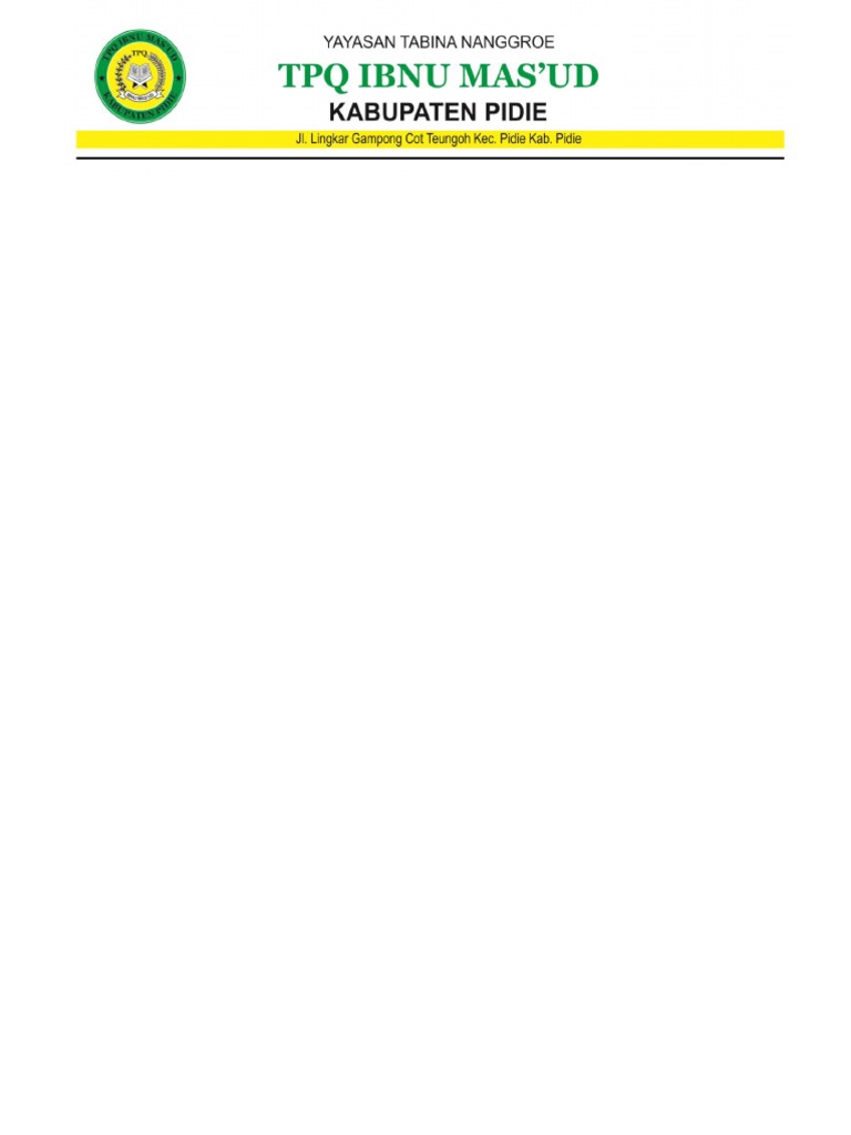Nama jabatan alam at yang bertanda tangan di bawah ini : Dalam contoh kop surat tpq , gawe cv telah memilihkan tema atau template yang terbaik untuk dijadikan inspirasi, ide ataupun acuan dalam penulisan surat anda. | perumahan puri cendana | laman 6 surat pemberitahuan pada yayasan dan surat izin. Contoh kop tpq yang bisa menjadi inspirasi anda yang akan membuat kop surat tpq ataupun bagi anda yang mencari inspirasi untuk membuat kop surat instansi anda. Kop surat umumnya terdiri atas nama yayasan nama tpq, alamat, dan logo dari tpq yang bersangkutan.